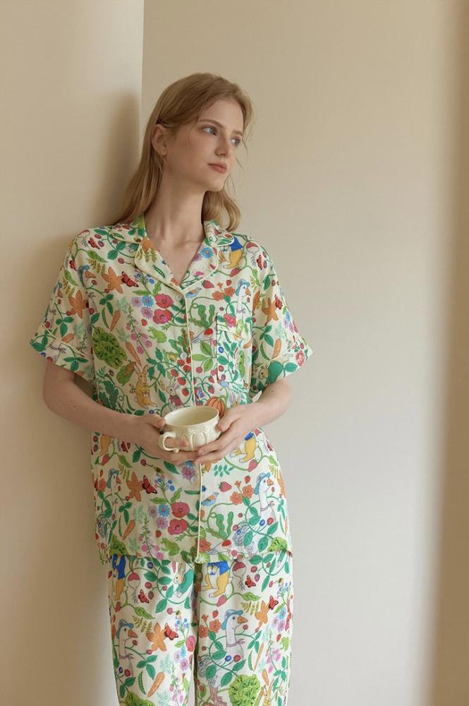 تألقي باللون الأخضر الزاهي مع تصميم أنثوي بسيط وأنيق يبرز ذوقك الراقي. هذه البجامة تجمع بين الراحة والفخامة لتشعرك بالانتعاش في كل لحظة، مع تصميم يجعلها مثالية للارتداء اليومي بأناقة ونعومة.